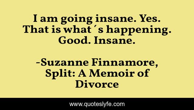 This page presents the quote "I am going insane. Yes. That is what´s happening. Good. Insane.". Author of this quote is Suzanne Finnamore, Split: A Memoir of Divorce. This quote is about insane, divorce, marriage, infidelity,.
