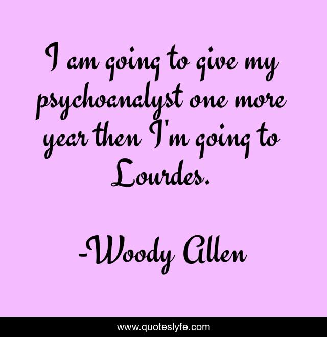This page presents the quote "I am going to give my psychoanalyst one more year then I'm going to Lourdes.". Author of this quote is Woody Allen. .