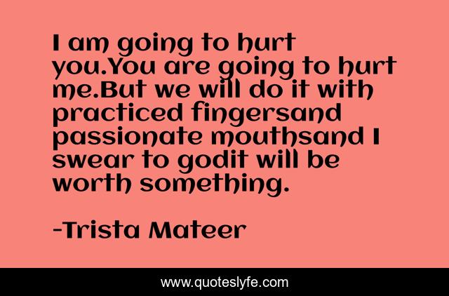 This page presents the quote "I am going to hurt you.You are going to hurt me.But we will do it with practiced fingersand passionate mouthsand I swear to godit will be worth something.". Author of this quote is Trista Mateer. This quote is about tumblr-writer, love, poetry, affection,.