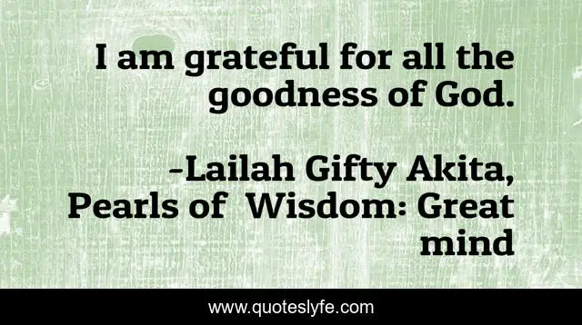 "Lailah Gifty Akita, Pearls of Wisdom: Great mind Quotes." Quoteslyfe.com, 2025. Fri. 05 Dec. 2025. <https://www.quoteslyfe.com/quote/I-am-grateful-for-all-the-goodness-97216>.