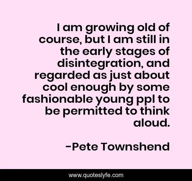 This page presents the quote "I am growing old of course, but I am still in the early stages of disintegration, and regarded as just about cool enough by some fashionable young ppl to be permitted to think aloud.". Author of this quote is Pete Townshend. .