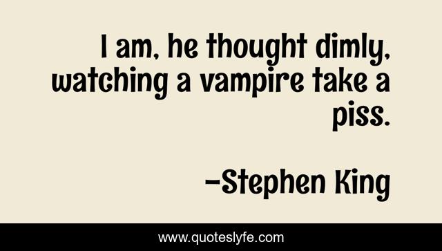 This page presents the quote "I am, he thought dimly, watching a vampire take a piss.". Author of this quote is Stephen King. This quote is about funny, comedy, vampire, gross,.