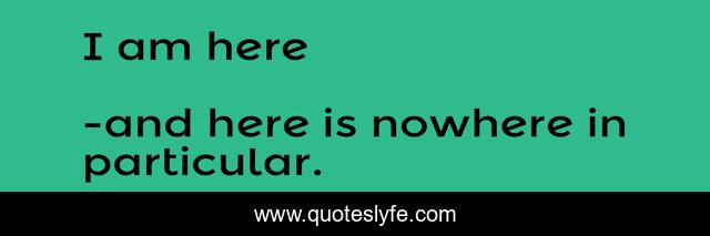 "and here is nowhere in particular. Quotes." Quoteslyfe.com, 2025. Mon. 08 Dec. 2025. <https://www.quoteslyfe.com/quote/I-am-here-256100>.