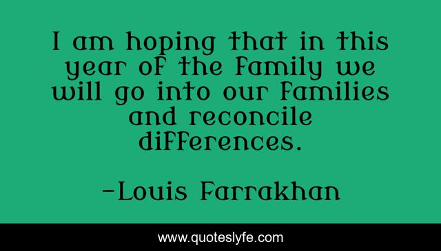 This page presents the quote "I am hoping that in this year of the family we will go into our families and reconcile differences.". Author of this quote is Louis Farrakhan. This quote is about differences, year,.