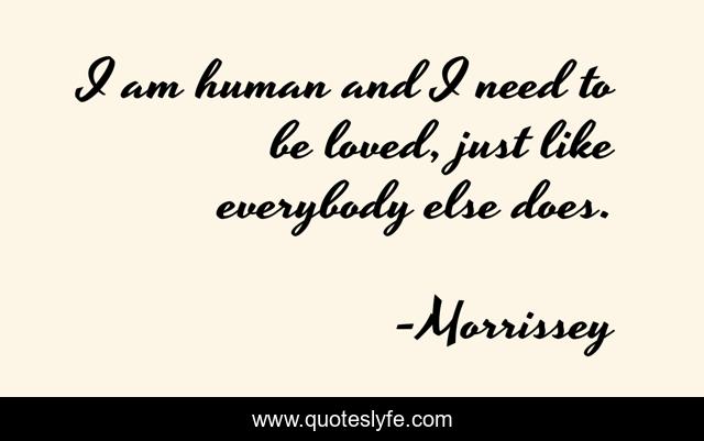 This page presents the quote "I am human and I need to be loved, just like everybody else does.". Author of this quote is Morrissey. This quote is about humor, music, lyrics,.