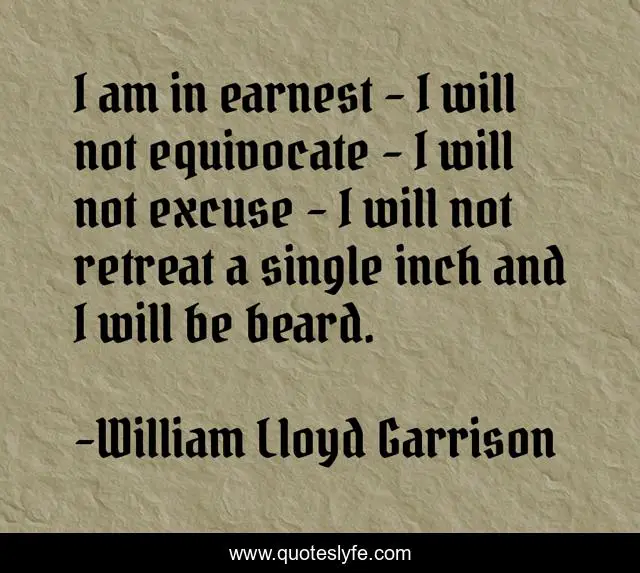 "William Lloyd Garrison Quotes." Quoteslyfe.com, 2025. Fri. 05 Dec. 2025. <https://www.quoteslyfe.com/quote/I-am-in-earnest-I-will-not-274883>.