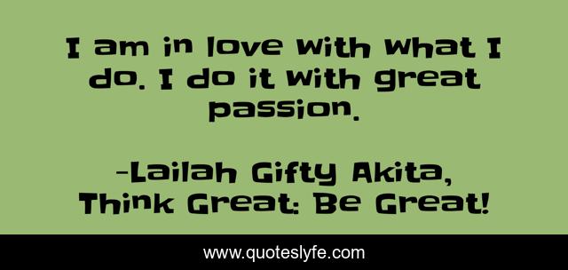 "Lailah Gifty Akita, Think Great: Be Great! Quotes." Quoteslyfe.com, 2025. Mon. 08 Dec. 2025. <https://www.quoteslyfe.com/quote/I-am-in-love-with-what-I-34498>.