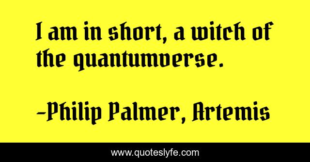 This page presents the quote "I am in short, a witch of the quantumverse.". Author of this quote is Philip Palmer, Artemis. This quote is about quantum, military-science-fiction, science-fiction,.