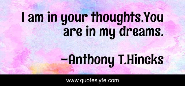 This page presents the quote "I am in your thoughts.You are in my dreams.". Author of this quote is Anthony T.Hincks. This quote is about life, love, philosophy, thought, dreams, in, in-my-dreams, your-thoughts, affection,.