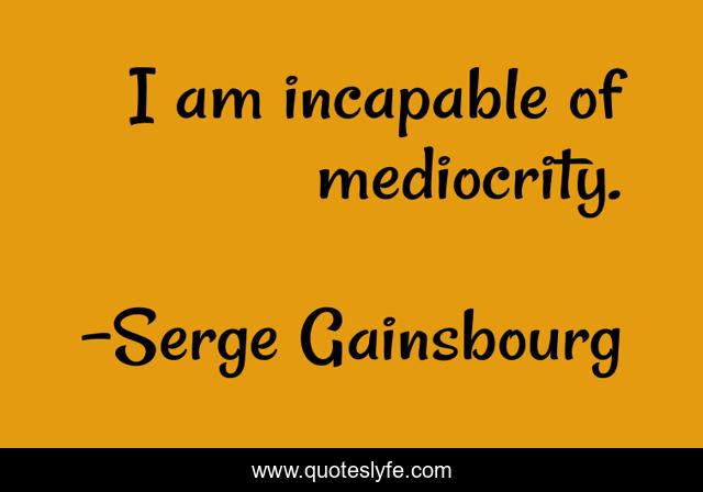"Serge Gainsbourg Quotes." Quoteslyfe.com, 2025. Mon. 08 Dec. 2025. <https://www.quoteslyfe.com/quote/I-am-incapable-of-mediocrity-186271>.