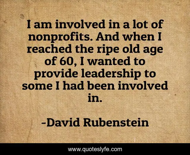 This page presents the quote "I am involved in a lot of nonprofits. And when I reached the ripe old age of 60, I wanted to provide leadership to some I had been involved in.". Author of this quote is David Rubenstein. This quote is about age, old age,.