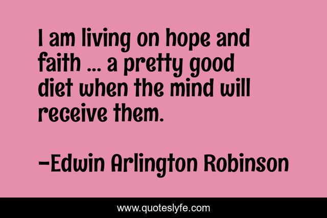 "Edwin Arlington Robinson Quotes." Quoteslyfe.com, 2025. Sun. 07 Dec. 2025. <https://www.quoteslyfe.com/quote/I-am-living-on-hope-and-faith-264588>.