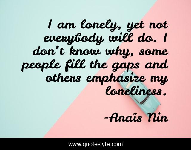 "Anaïs Nin Quotes." Quoteslyfe.com, 2025. Mon. 08 Dec. 2025. <https://www.quoteslyfe.com/quote/I-am-lonely-yet-not-everybody-will-1599>.
