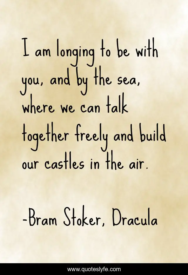 This page presents the quote "I am longing to be with you, and by the sea, where we can talk together freely and build our castles in the air.". Author of this quote is Bram Stoker, Dracula. This quote is about hopes, dracula, sea, daydream,.