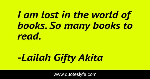 This page presents the quote "I am lost in the world of books. So many books to read.". Author of this quote is Lailah Gifty Akita. This quote is about book-lovers, reading-books, book, books, book-of-orion, bookstores, reading-for-life, reading, books-reading,.