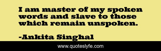 This page presents the quote "I am master of my spoken words and slave to those which remain unspoken.". Author of this quote is Ankita Singhal. This quote is about unspoken-words, life, master, spoken-words, words,.