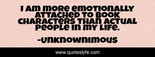This page presents the quote "I am more emotionally attached to book characters than actual people in my life.". Author of this quote is Unknownimous. This quote is about emotional, attachment, emotions,.