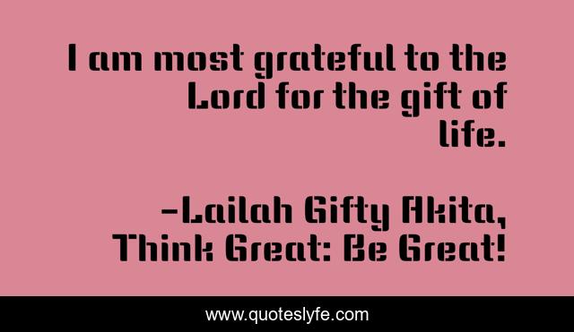 "Lailah Gifty Akita, Think Great: Be Great! Quotes." Quoteslyfe.com, 2025. Fri. 05 Dec. 2025. <https://www.quoteslyfe.com/quote/I-am-most-grateful-to-the-Lord-147681>.