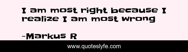 This page presents the quote "I am most right because I realize I am most wrong". Author of this quote is Markus R. This quote is about right, curiousity, perspective,.