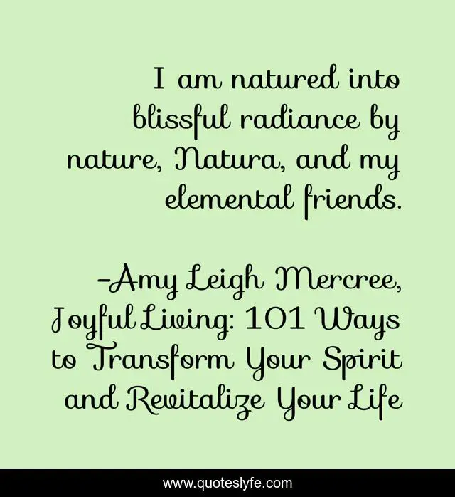 "Amy Leigh Mercree, Joyful Living: 101 Ways to Transform Your Spirit and Revitalize Your Life Quotes." Quoteslyfe.com, 2025. Fri. 05 Dec. 2025. <https://www.quoteslyfe.com/quote/I-am-natured-into-blissful-radiance-by-14982>.