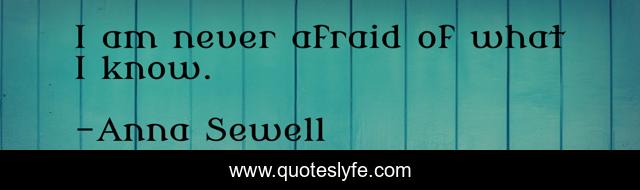 This page presents the quote "I am never afraid of what I know.". Author of this quote is Anna Sewell. .