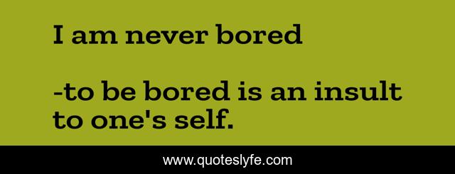 "to be bored is an insult to one's self. Quotes." Quoteslyfe.com, 2025. Sat. 06 Dec. 2025. <https://www.quoteslyfe.com/quote/I-am-never-bored-255652>.