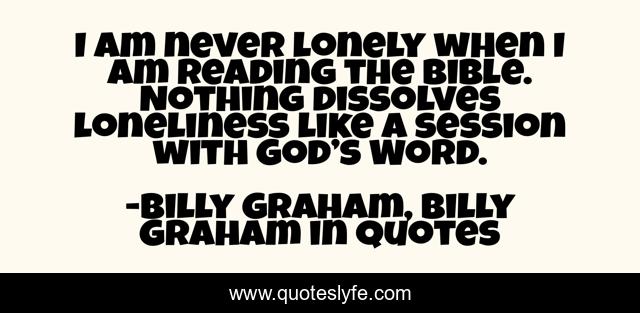This page presents the quote "I am never lonely when I am reading the Bible. Nothing dissolves loneliness like a session with God’s Word.". Author of this quote is Billy Graham, Billy Graham in Quotes. This quote is about loneliness, billy-graham,.