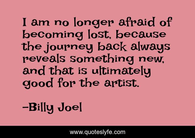 This page presents the quote "I am no longer afraid of becoming lost, because the journey back always reveals something new, and that is ultimately good for the artist.". Author of this quote is Billy Joel. This quote is about art, journey, music,.