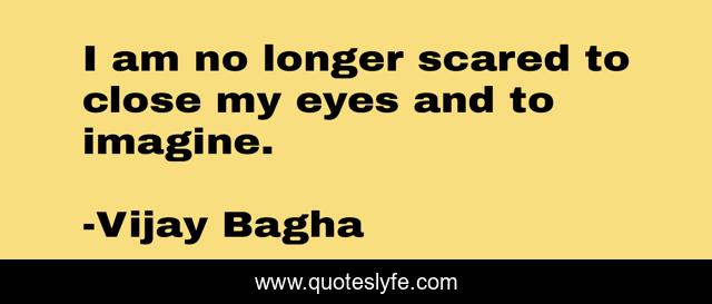 This page presents the quote "I am no longer scared to close my eyes and to imagine.". Author of this quote is Vijay Bagha. This quote is about enthusiasm, life, creativity, inspirational, life-lessons,.