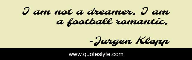 This page presents the quote "I am not a dreamer. I am a football romantic.". Author of this quote is Jurgen Klopp. This quote is about football, dreamer,.