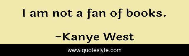 "Kanye West Quotes." Quoteslyfe.com, 2025. Sat. 06 Dec. 2025. <https://www.quoteslyfe.com/quote/I-am-not-a-fan-of-books-79156>.