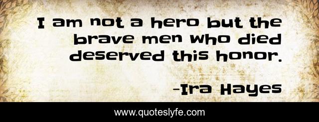 This page presents the quote "I am not a hero but the brave men who died deserved this honor.". Author of this quote is Ira Hayes. This quote is about hero, honor,.