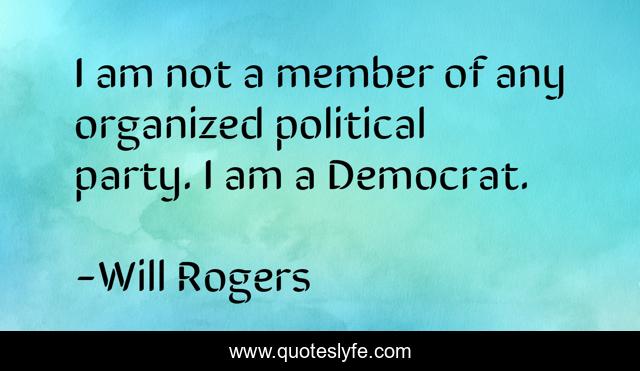 This page presents the quote "I am not a member of any organized political party. I am a Democrat.". Author of this quote is Will Rogers. This quote is about party, political,.