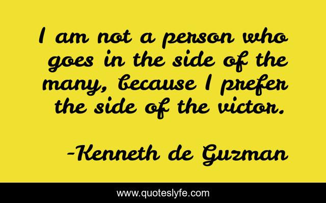 This page presents the quote "I am not a person who goes in the side of the many, because I prefer the side of the victor.". Author of this quote is Kenneth de Guzman. This quote is about victory, judging,.
