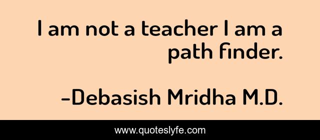 This page presents the quote "I am not a teacher I am a path finder.". Author of this quote is Debasish Mridha M.D.. This quote is about philosophy, debasish-mridha, path-finder, debasish-mridha-m-d, quotes, inspirational, teaching, enthusiasm, education,.