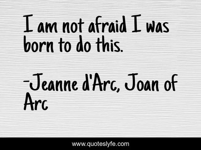 "Jeanne d'Arc, Joan of Arc Quotes." Quoteslyfe.com, 2025. Sun. 07 Dec. 2025. <https://www.quoteslyfe.com/quote/I-am-not-afraid-I-was-born-44443>.