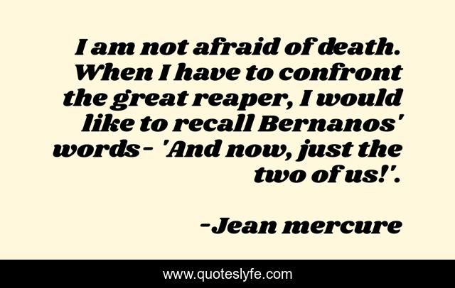 This page presents the quote "I am not afraid of death. When I have to confront the great reaper, I would like to recall Bernanos' words- 'And now, just the two of us!'.". Author of this quote is Jean mercure. .