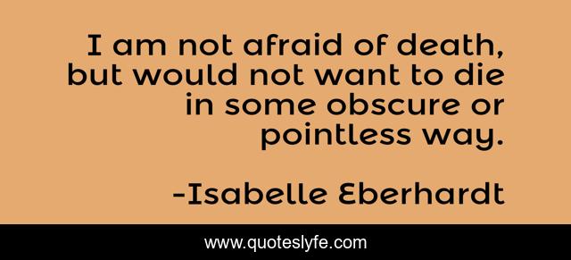 This page presents the quote "I am not afraid of death, but would not want to die in some obscure or pointless way.". Author of this quote is Isabelle Eberhardt. .