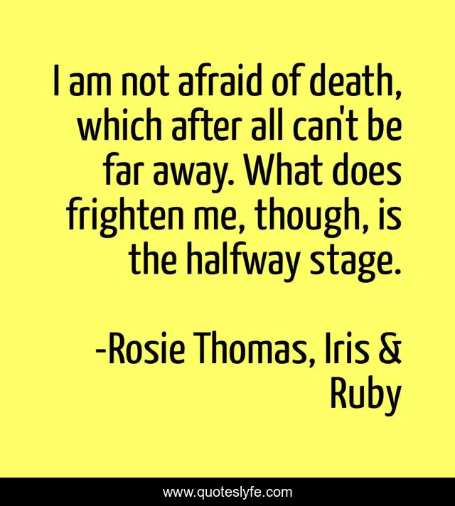 "Rosie Thomas, Iris & Ruby Quotes." Quoteslyfe.com, 2025. Sun. 07 Dec. 2025. <https://www.quoteslyfe.com/quote/I-am-not-afraid-of-death-which-21874>.