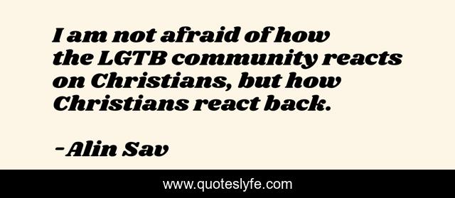 This page presents the quote "I am not afraid of how the LGTB community reacts on Christians, but how Christians react back.". Author of this quote is Alin Sav. This quote is about life, leadership, philosophy,.