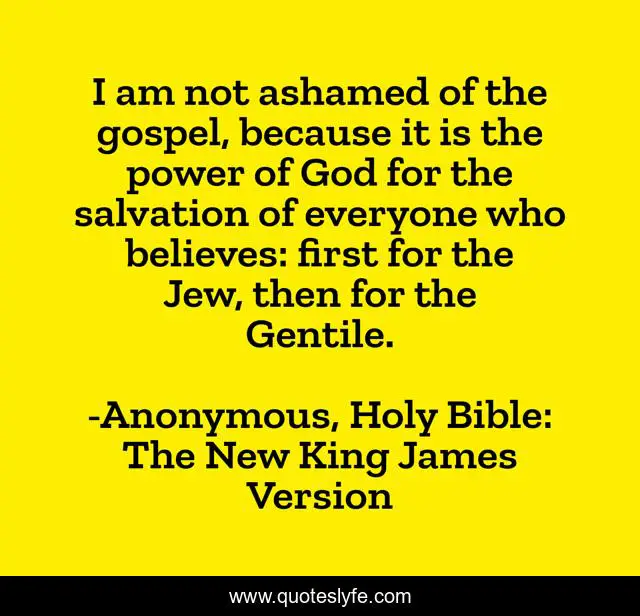 "Anonymous, Holy Bible: The New King James Version Quotes." Quoteslyfe.com, 2025. Sat. 06 Dec. 2025. <https://www.quoteslyfe.com/quote/I-am-not-ashamed-of-the-gospel-10869>.