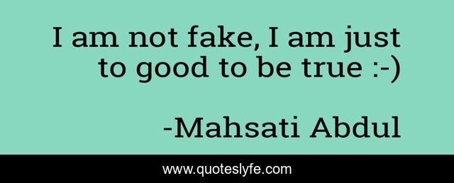 This page presents the quote "I am not fake, I am just to good to be true :-)". Author of this quote is Mahsati Abdul. This quote is about funny, comedy, confidence-and-attitude, true-people-relations,.