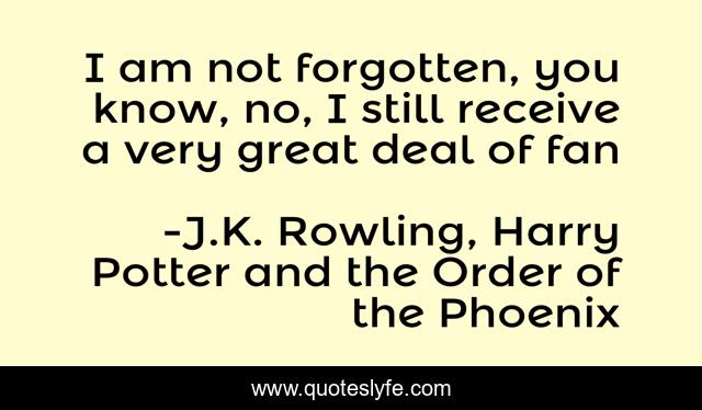 This page presents the quote "I am not forgotten, you know, no, I still receive a very great deal of fan". Author of this quote is J.K. Rowling, Harry Potter and the Order of the Phoenix. This quote is about funny, humor, gilderoy, rowling, lockehart, comedy, harry-potter,.