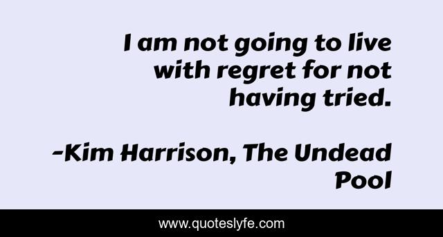 This page presents the quote "I am not going to live with regret for not having tried.". Author of this quote is Kim Harrison, The Undead Pool. .