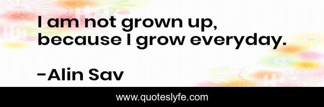 This page presents the quote "I am not grown up, because I grow everyday.". Author of this quote is Alin Sav. This quote is about enthusiasm, life, inspirational,.