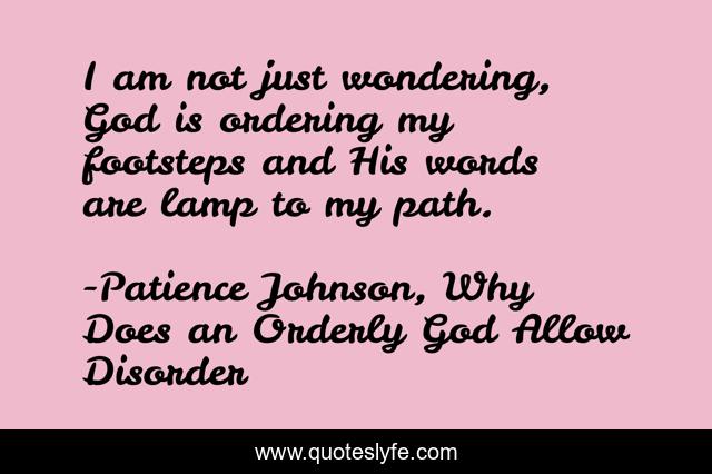 "Patience Johnson, Why Does an Orderly God Allow Disorder Quotes." Quoteslyfe.com, 2025. Fri. 05 Dec. 2025. <https://www.quoteslyfe.com/quote/I-am-not-just-wondering-God-is-78005>.