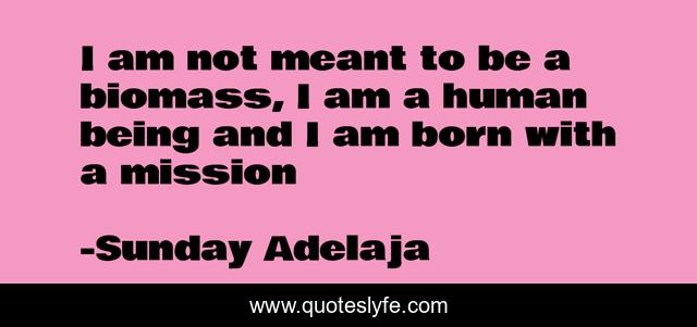 This page presents the quote "I am not meant to be a biomass, I am a human being and I am born with a mission". Author of this quote is Sunday Adelaja. This quote is about life, truth, mission, biomass, purpose, birth, human-being, calling,.