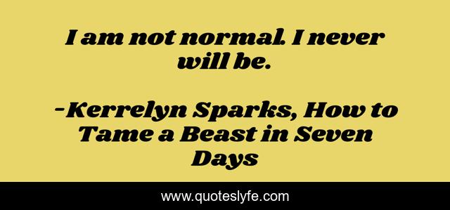 "Kerrelyn Sparks, How to Tame a Beast in Seven Days Quotes." Quoteslyfe.com, 2025. Sat. 06 Dec. 2025. <https://www.quoteslyfe.com/quote/I-am-not-normal-I-never-will-82328>.