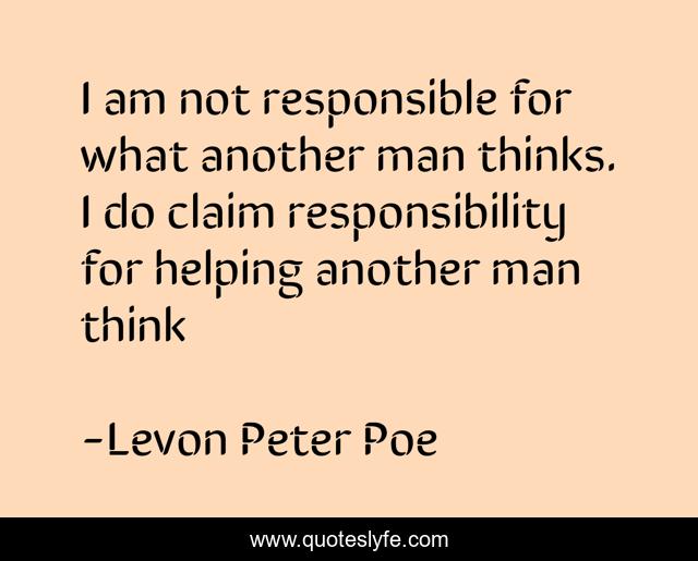 This page presents the quote "I am not responsible for what another man thinks. I do claim responsibility for helping another man think". Author of this quote is Levon Peter Poe. .