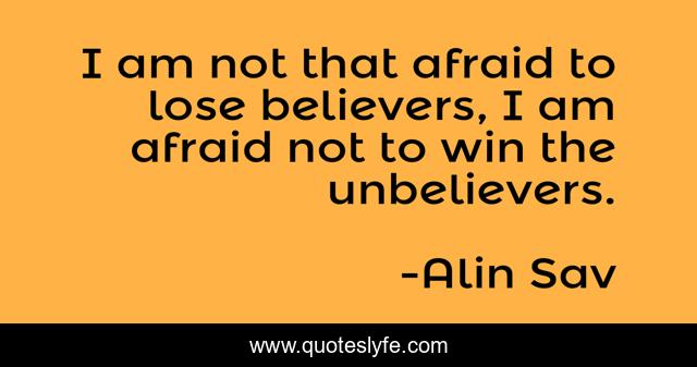 This page presents the quote "I am not that afraid to lose believers, I am afraid not to win the unbelievers.". Author of this quote is Alin Sav. This quote is about philosophy-of-religion, spiritual,.